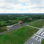 A small airfield in Normandy with a 1km long asphalt runway, and a grass one mainly used by gliders.