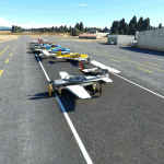 The airport runway, general layout, taxiways, painted lines and parking spots have been kept with stock implementation. I re-implemented from scratch all aprons, airport buildinds, beacon tower and placed the windsocks where they should be. Some minor adjustoments were made to elevation bumps in the taxiways, runway and aprons. Night lighting has been improved as well.