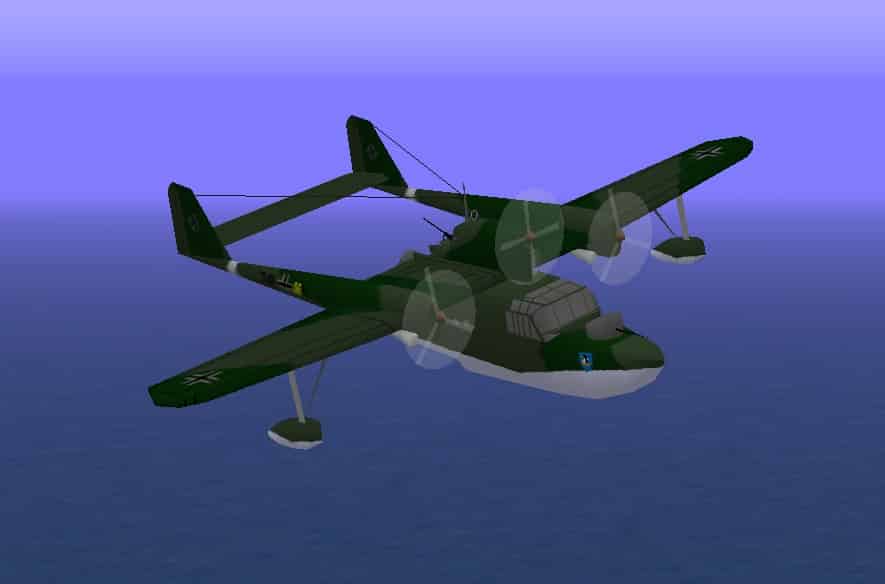 The Blohm & Voss BV 138 Seedrache (Sea Dragon) was a World War II German flying boat that functioned as the Luftwaffe’s main long-range maritime reconnaissance aircraft. Original FS5 version by M. D. Anderle Reworked to CFS, with moving parts, damage profile and new textures, by Edmundo Abad, 2010.