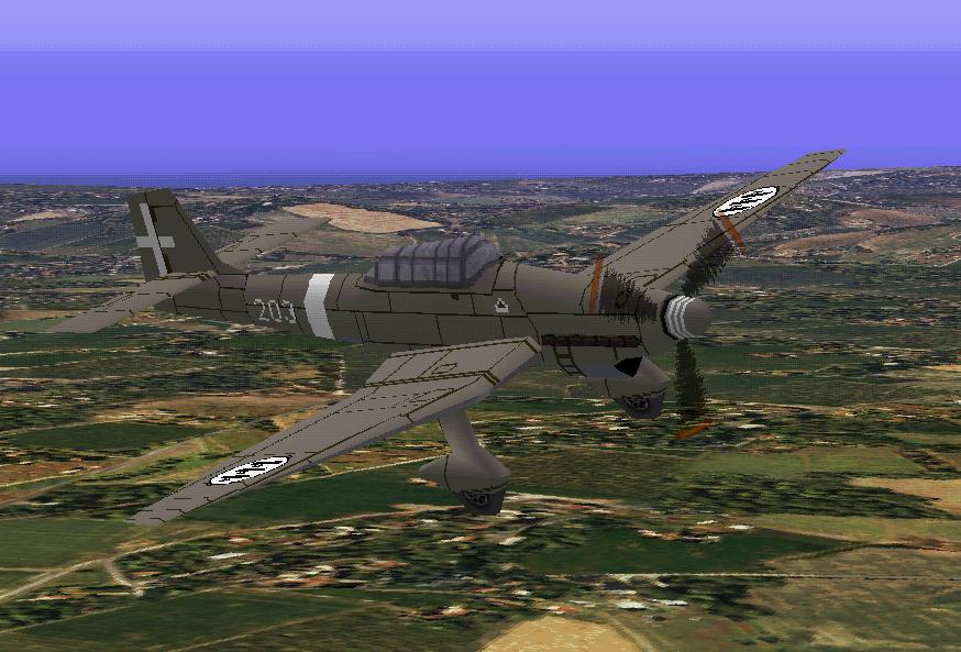 Flyable version of stock CFS Junkers 87D, with new 256×256 BMP textures, for campaigns on North Africa and Mediterranean theater. Original stock CFS Ju 88A: Microsoft. Panel: Default Hurricane panel. Reworked with new air file, new textures and sound: Edmundo Abad 2010.