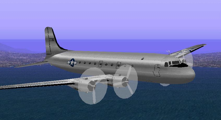 FS98/CFS USAAF Douglas C-54 “Sacred Cow”. US Army Air force Douglas C-54 # 27262. The USAAF received this airplane at the begins of the decade of the 40’s, During WWII it was used by Franklin D. Roosevelt as presidential plane. To this airplane he was given the name of “The Sacred Cow”. Original FS98 aircraft designer: Harry Follas & T.Gibson. All reworked CFS version with metal textures, moving parts and damage profile with 2×7.7mmmachine guns on side windows: Edmundo Abad, May. Edmundo Abad