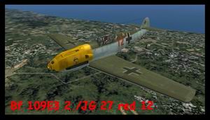 CFS3 Bf 109E-3 2./JG 27 red 12 Battle of Britain – Blitz summer 1940 Paintscheme in RLM 71/65 markings in RLM 04FS. AEROPLANE HEAVEN Bf 109E Mk 2.1 REPAINTS for CFS 3 by the Bill Wilson and Foute Man Original plane by Aeroplane Heaven stand alone version flight dynamics by Bill “Spitfrnd” Wilson repaint & hex editing by the Foute Man filename: fs_bf109e_24v2-1.zip To fly this plane you need to have the fm_bf109e_shared files installed. 1.9MB