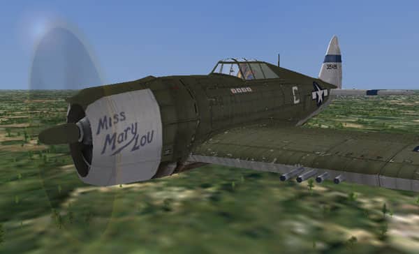 CFS3 Republic P-47D-20 Thunderbolt “Miss Mary Lou”. “Miss Mary Lou” was flown by Major Henry McAfee of the 19th Fighter Squadron and is presented here as it would have appeared while based at Saipan in July 1944. This is a standalone repaint of the stock CFS3 P-47D by Daniel Leahy. 1.9MB