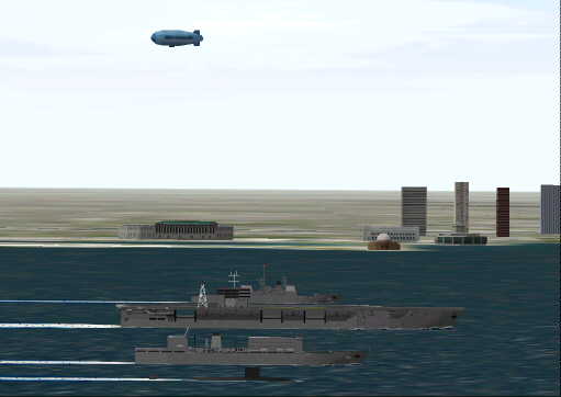 CHICAGO FICTIONAL NAVAL FORCE SCENERY FOR FS2000 by Osvaldo Martinetti In this fictional scenery you can see a naval force very close to Chicago Meigs. The carrier deck and the Aegis destroyers flight decks are fully landable, so you can test your fixed wing and helicopter flying skills, and try what sailors call “helo cross deck”. 73K