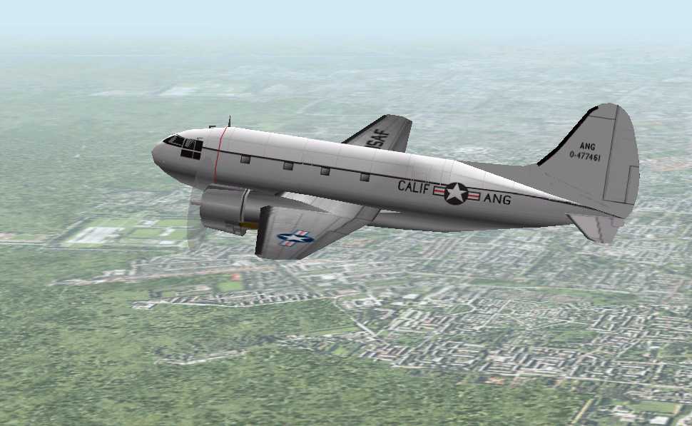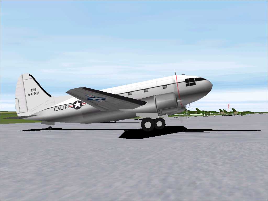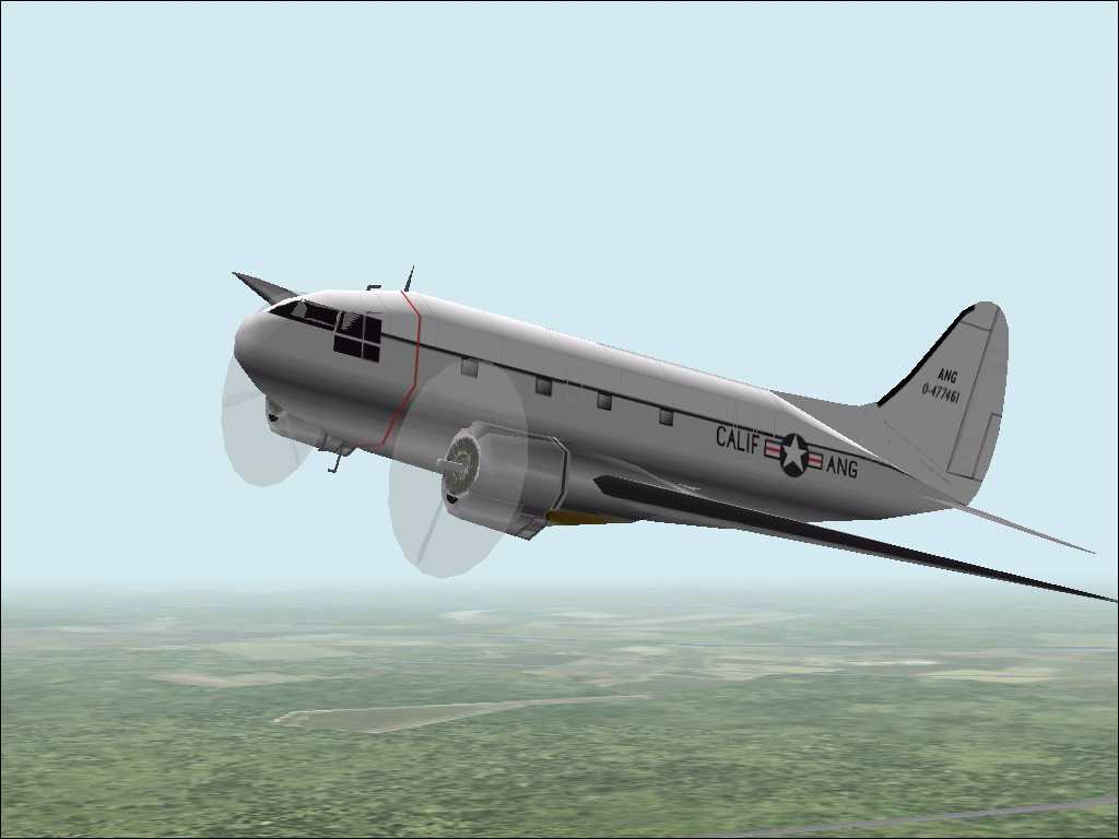 CURTISS C46 447461 California ANG ACKNOWLEDGMENTS This flying model was made by Matt Standish and redesignated Dave McQueens thanks and credits to them. Ignacio Sanguineti and Raúl A. Rodríguez have changed in the .afx files, originally this model was painted as a Transocntinental C46 by Ignacio and Raul. ANG repaint by Don Gilham. 262K
