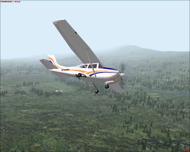 Davis Oregon Scenery for FS2000 by Richard Goldstein. Davis is a small airstrip 1 Km south of Gates, Oregon. I chose the area because it had an interesting mix of natural features. In order to appreciate this scenery at its best, you will need to download and install Lennart Arvidsson’s superb ‘Replacement textures for FS 2000’.(here) Without these files the airport texture will not match as well as intended. This scenery also works best with Eddie Denney’s ‘Oregon’ mesh elevation scenery. Although the Davis scenery works without it, the added relief of Eddie’s mesh serves as a platform for the tree formations. 273K