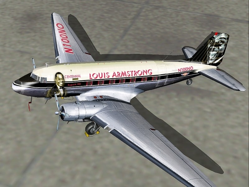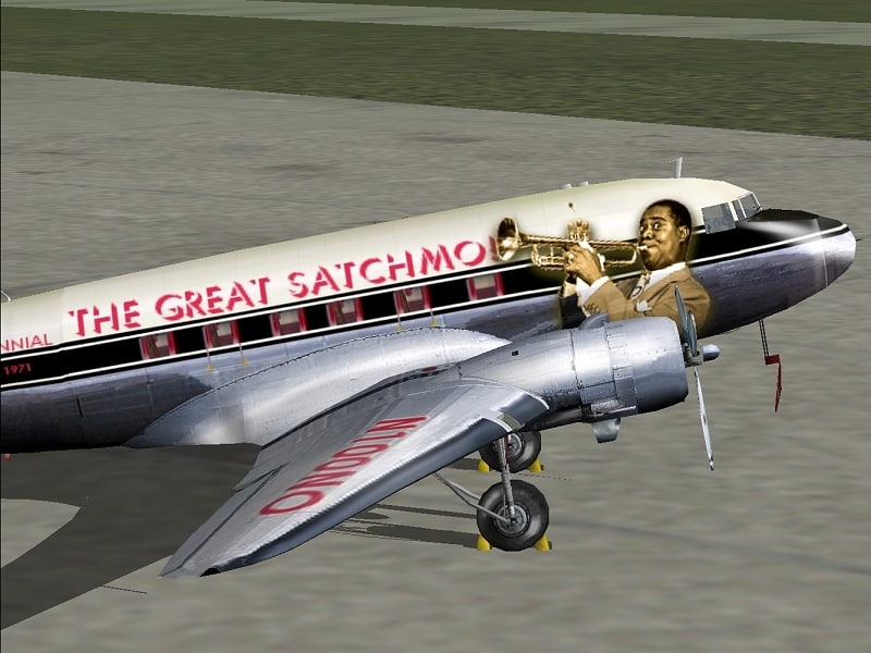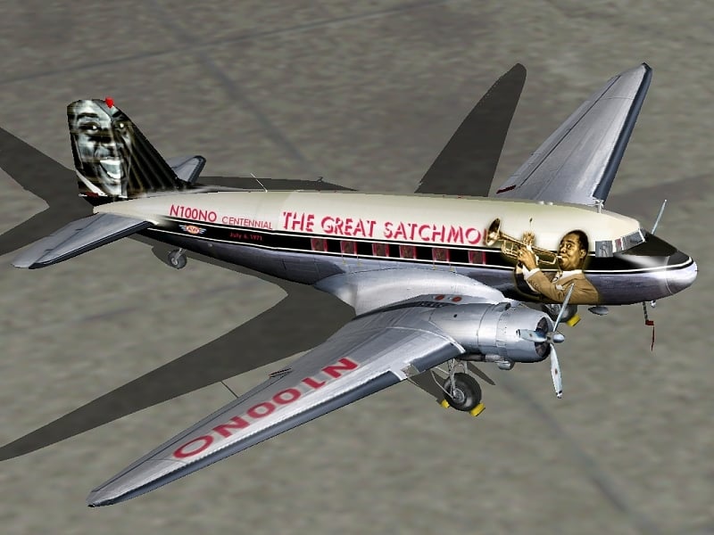 FS2000 Douglas DC-3 “The Great Satchmo!” This is the 1st Alaskan Winds Oldies edition. A celebration of the Centennial of the birth of the Great New Orleans musician, Louis Armstrong. New Orleans Intl Airport (MSY) has been recently renamed to Louis Armstrong New Orleans Intl Airport. Start-Up flight included. Satchmo’s a repaint of an original by Jan Visser, Roy Chaffin and Bill Rambow. Repainted by Joao Paz. 4.6MB