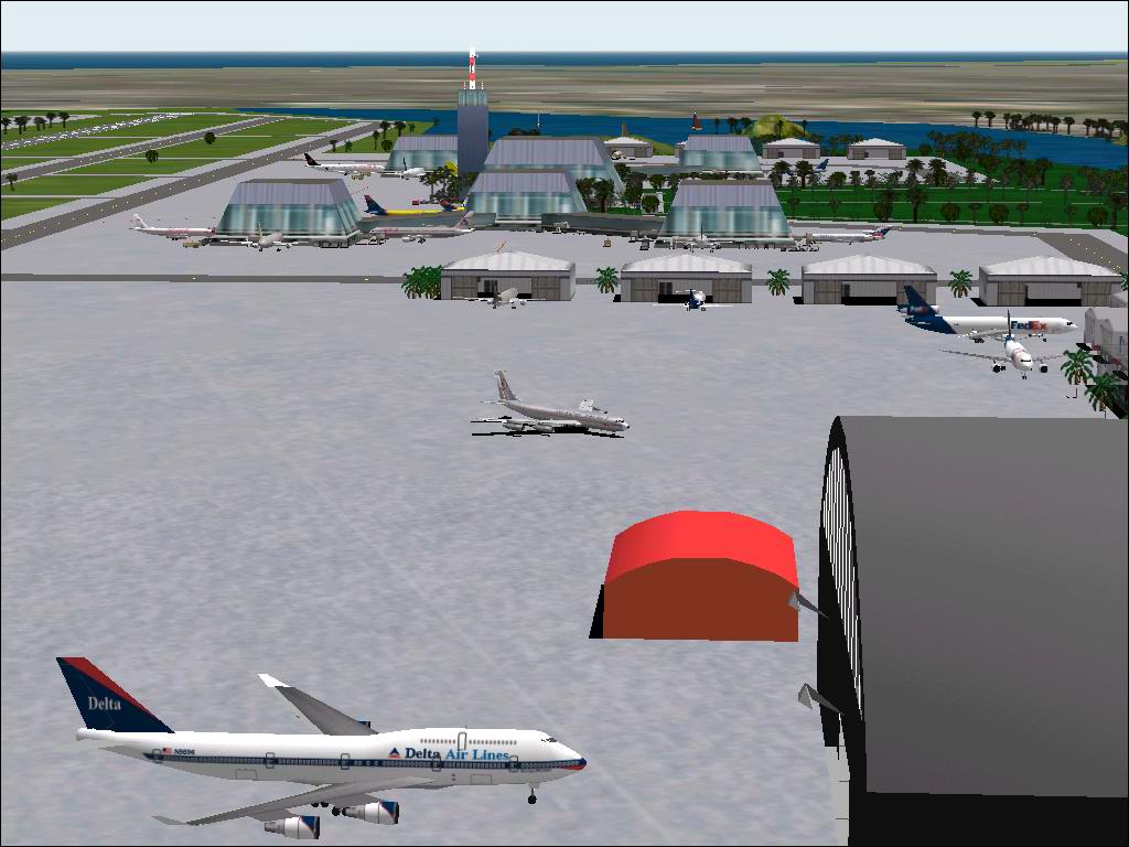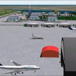 FS2000 Fortaleza, Brazil, Pinto Martins International Airport. A fictional airport added on to the default FS scenery at this location. Scenery adds a large International Terminal, several hangar areas, a parking structure, and lot, a lake with a luxury resort complex on it, large buildings at the city center, and turns the FS default airport into a smaller comuter airport with the terminal matching the same architecture as that of the main airport, to tie the two together. The default FS lake has also been enhanced with an office building, hills, and lots of palm trees. Scenery developed for FS2000, and has not been tested in FS98, or FS2002, but should be harmless. By Bill Melichar. 985K