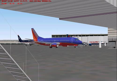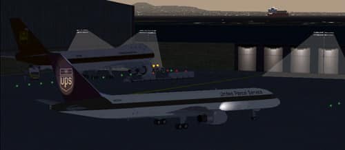 FS2000 KOAK Oakland International, CA UPS610. What’s been added? I have made several simple yet effective additions to the default scenery. I added gates to the passenger terminal, as well as appropriate static aircraft. I left out detailed scenery in the passenger terminal area because my goal was to enhance the cargo aspect of KOAK for UPSVAC pilots. By Stephen Nicholson. 1.9MB