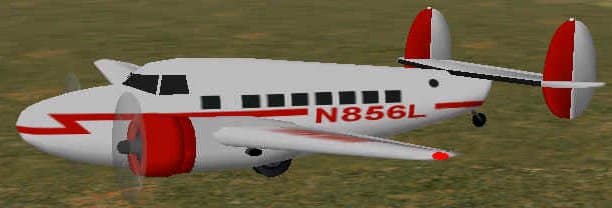FS2000 Lockheed Super Electra. An FSDS aircraft with 512×512 textures, full moving parts, recessed wheel wells, nav and strobe lights, custom panel, custom gauges, custom sound files and a custom CFS-based flight model. By Chuck Dome. 2.8MB