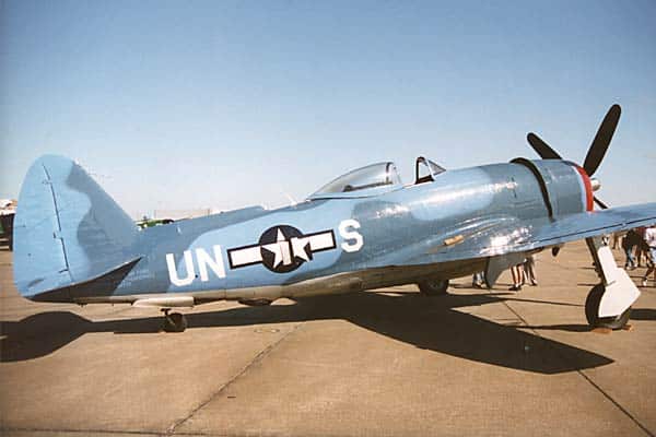 FS2000 – the original CFS P-47d Thunderbolt in Sky Blue Camouflage adapted for FS2K. This is a repaint of the default CFS P-47d Thunderbolt aircraft painted in Sky Blue Camouflage. The Aircraft color scheme was taken from an original photograph, This aircraft is from CFS and tested in FS2000. Uses P-47d Panel. It will fly equally well in CFS and FS2000. All flight surfaces are moveable, transparent cockpit, retractable landing gear. Repaint by Bob Bongiovanni. 836K