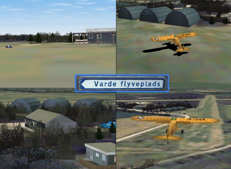 FS2000 Scenery Photorealistic scenery of Varde Airfield, Denmark All objects are photorealistic; Buildings, hangars, even the barrels along the two grass-strips. Also incluces fences, custom made trees, bushes, and a precision landing point for parachutists. By Ole Egholm. 2.6MB