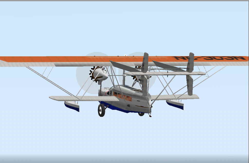 FS2000 Sikorsky S-38 biplane amphibian. Reg #NC303N built ca. 1929, used by Northwest Airways. Sikorsky’s first commercial success, 120 S-38s were built. Called “a collection of Sikorsky spare parts flying in formation.” Separate float and wheeled versions included. Features moving parts and detailed radial P&W engines. Retracting gear with spoked wheels. F8 opens windows and cabin hatch. Panel uses default and public gauges. By George Diemer. 2.5MB