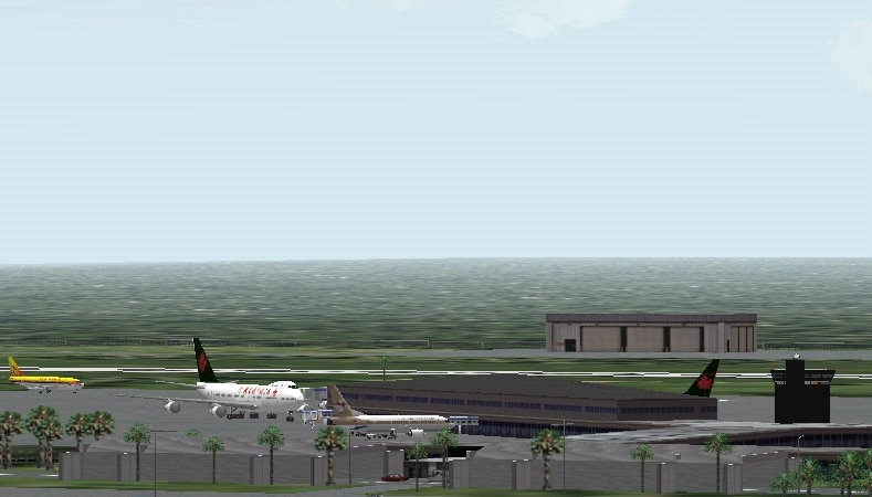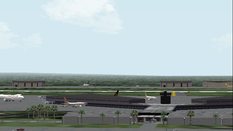 Piarco International 2001 Trinidad and Tobago. Port of Spain. An all new look for this International airport. Custom dynamic scenery includes Air Canada and KLM 747s, Surinam Airways DC-8s and 737s and BWIA 737s. This is the home of BWIA. There are extended jetways for 777s, 747s, 767s, 737s and smaller turbo prop aircraft. The unused 747 gate has a docking system. Included is a wallpaper of an AC747 boarding passengers and a video of dropping off a passenger at the terminal. BY: Owain Robinson. 2.9MB