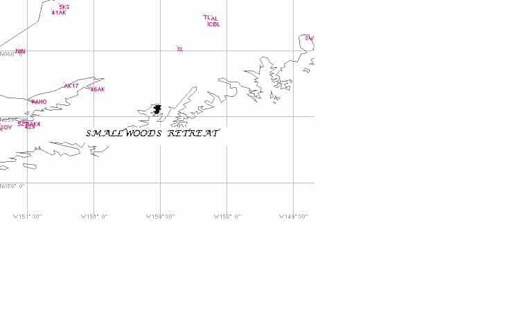Smallwoods Retreat! Smallwoods is located 158 miles Southwest of Valdez, Alaska on a heading of 233 degrees. This is a very restful place to fly to and is not too far from some bigger towns. It features both land and water starts. The dirt runway is approximatly 1700 feet long and is cleared pretty well for approaches and departures. There are 3 cabins located there, one being owned by Jerry Smallwood, owner of the retreat. He and his wife Tina will make you comfortable during your stay there. Stop by and see them! If you see a yellow Beaver, they’re home! Watch out for the animals again and have a great time relaxing and taking in what nature has given us. Scenery by Don Moser / Alaska By Don. 649K
