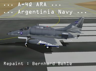 A4/TA4 Skyhawk 2 Argentine Navy with panel & Sound (A4Q.zip) SingleSeat/Double Seat “Falcões do mar” The VF-1 Squadron is the first Brazilian Navy Aerial Unit to operate fighters. Original by Denis da Silva Panel by Paolo Dessani Repainted by Bernhard Behle. 11MB