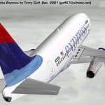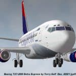 B737-200 Delta Express for FS2000 and FS2002. Recently built from scratch in FSDS. Features full 3D moving surfaces, Flight and Ground Spoilers, Rolling Wheels, Steerable nose gear with landing light, ‘Photo Real’ High Resolution day and night textures (not scanned photos), Landing Light beams, Un-Synchronised Strobe lighting, Transparent flight deck windows, 3D Compressor blades, Working thrust reversers. Accurate model design and AIR file. By Terry Gaff. 4.1MB