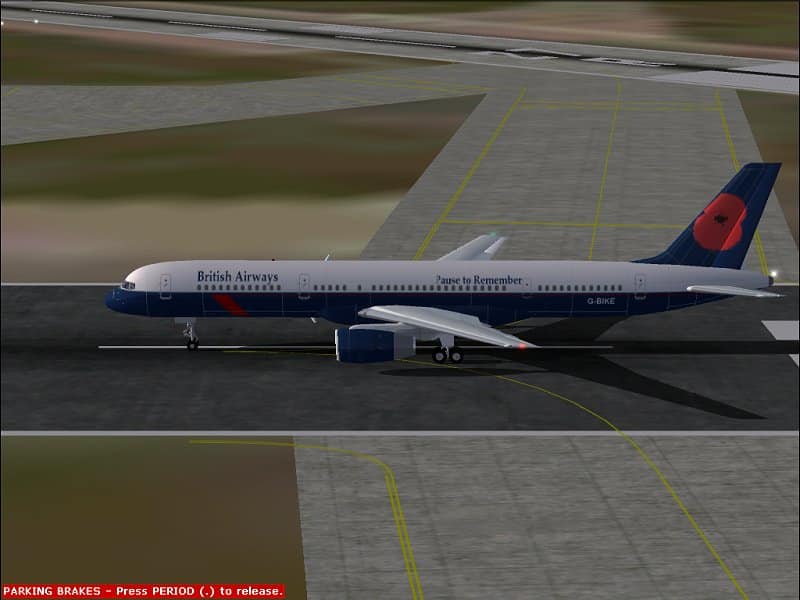 British Airways B757 “Pause to Remember” Landor livery This is a repaint of Mike Stones Boeing 757-200 in the BA landor “Pause to remember” Poppy day livery!. This may not be uploaded to any site without the authors permission, nor must this aircraft be used in any payware product due to copyright restrictions enforced by the author. I hope you enjoy the repaint. Regards Ashley Flynn. 693K