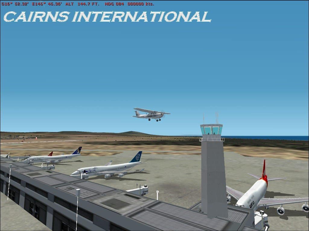 Cairns International Airport (QLD) Australia. (YBCS). Contains Cairns International Airport in Queensland Australia. Cairns is the gateway to the Great Barrier Reef in Far north Queensland.Population ia about 112,000 people the main industry in Cairns now is tourism.Comes with full textures,afcad file. You need airport 2.10, VOD textures, NOVA and NOVA GOLD TEXTURES (here) , Gerrish tree object library available here. in your FS2002 main texture folder, for this scenery to show correctly. Steve Davis. 2.9MB