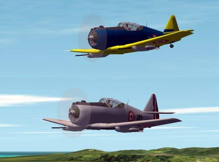 CFS2\FS2002 North American NA-50A. North American developed the NA-50A, a single-seat fighter from the company’s two-seat NA-26 advanced trainer. The only customer for the NA-50A was the Peruvian Air Force. Seven examples were delivered to Peru in 1938-1939 and called “Torito”. The Peruvians fitted racks under the wings for light bombs. During the brief war between Peru and Ecuador in 1941, the Peruvian NA-50As actually flew a number of combat sorties. Remade for CFS2/FS2002 with modified Model, Textures, Air and Dp files, external stores and navigation options by A.F.Scrub. 437K