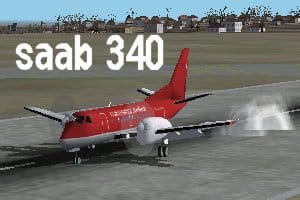 FS2000/FS2002 NorthWest Saab 340 Twin turboprop by greggory payne with mods by Dave Tomlinson with added landing lights & beams, new strobe, nav lights & pilot, copilot. File size 2.5MB