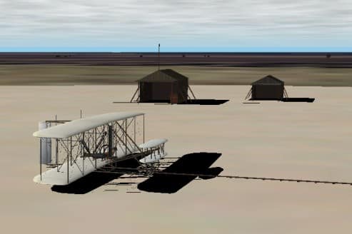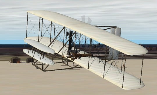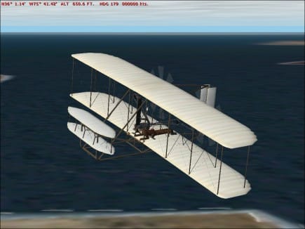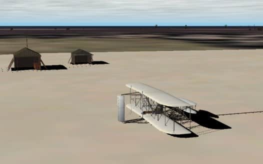 FS2002 – 1903 Wright Flyer Version 2, FSDS V2 This version has an animated engine, controls, pilot,and most surfaces. Also included is a flight set to December 17, 1903. Scenery included is the camp/hanger, Orville, and the launch rail at Kitty Hawk, NC. By Paul Beardsley. 2.2MB
