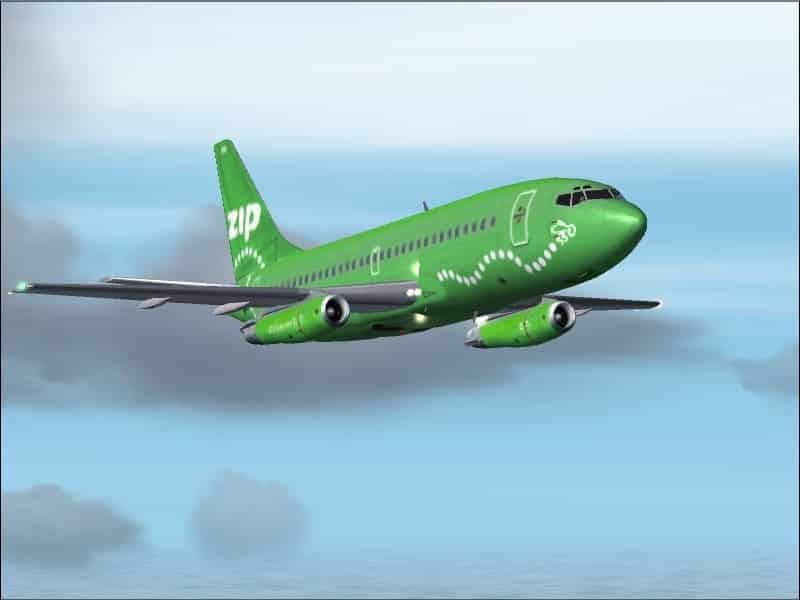 FS2002 B737-200 Zip green The brandnew FlightFX/SG Air Boeing 737-200 It features the latest reflection including dynamic shine, lighting, and animation technology including accurate flaps, landing gears, and thrust reversers and dynamic wing and engine views. The lighting effects are by SGA. Textures by Erick Cantu and Mike Baumann. Paint job Marcelo Allende. 1.8MB