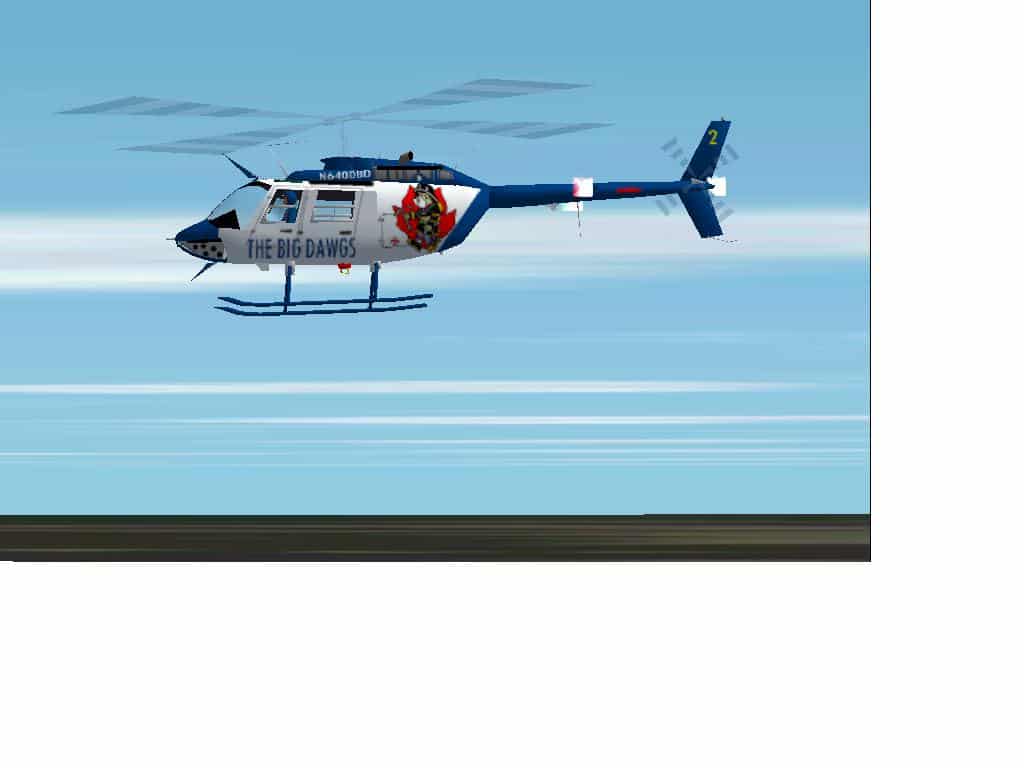 FS2002 Big Dawgs Bell 206 Jetranger. This Chopper is Fictional Paint and a Thanxgift to Charlie Young with his Goodlooking Pensacola-Scenerys and Adventures !The “BigDawgs”Logo is Copyright by Charlie Young ! Chopper Design and Paint by Emanuel Dietz. 2.4MB