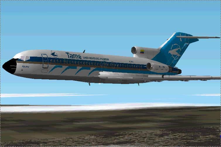 FS2002 Boeing 727-100-017 TAME (Ecuador) Registration HC-AZY ” AZUAY” Aircraft by Kevin Trinkle and REPA Estudios( Antonio Reyes) The package includes aircraft, new textures and sounds. TAME, the major ecuadorian airline uses this bird in domestic flights in Ecuador-South America. Repainted by Flavio Muñoz M. 1.2MB