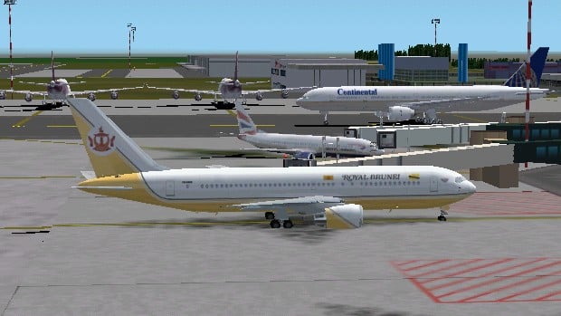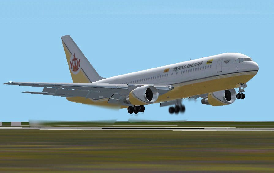 FS2002 Boeing 767-27G/ER Sultan’s Flight – Royal Brunei This is a repaint of the Project OpenSky Boeing 767-200ER, in Royal Brunei Airlines paint scheme. The plane is operated by the Sultan’s Flight and is painted in Royal Brunei Airlines livery, aircraft regristration V8-MHB, engine type GE CF6-80C2B4F. Painted by A. I. Hj. Jumat. 1.6MB