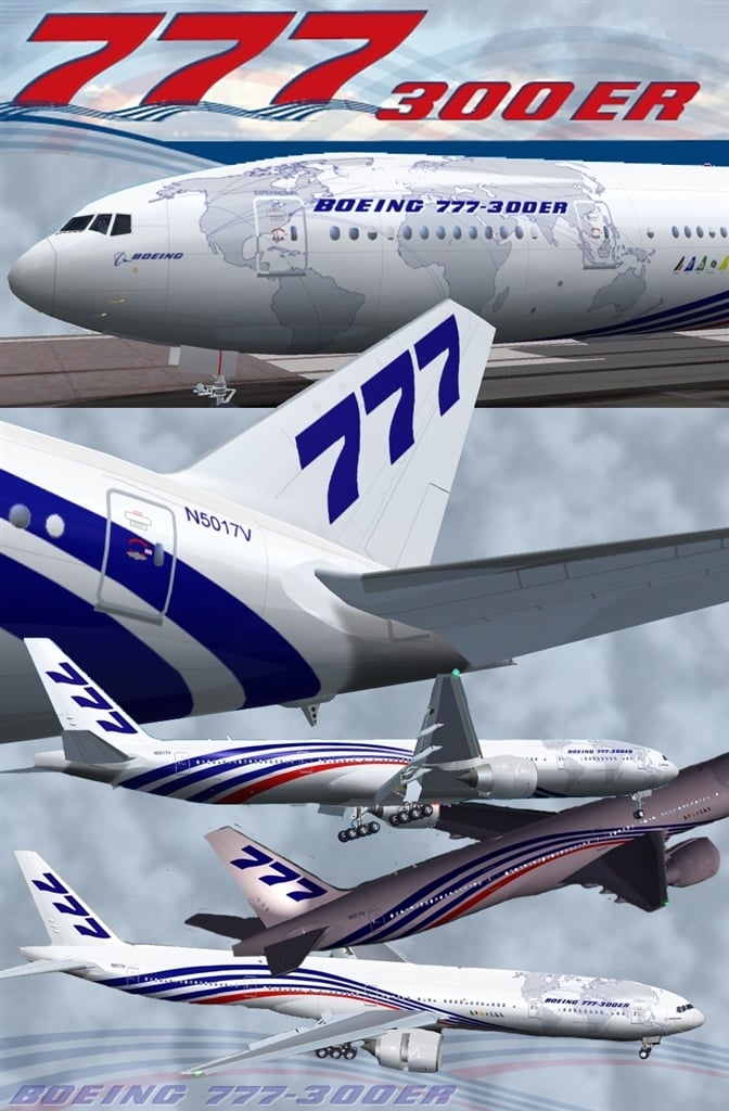 FS2002 Boeing 777-300 House Livery. Repaint of the new Meljet 777-300 (N5017V) in the newest house livery of boeing as seen on the newest member of the 777 family, the Boeing 777-300ER. Original by Meljet (www.meljet.com). Repainted by Ben Jones. 4.3MB