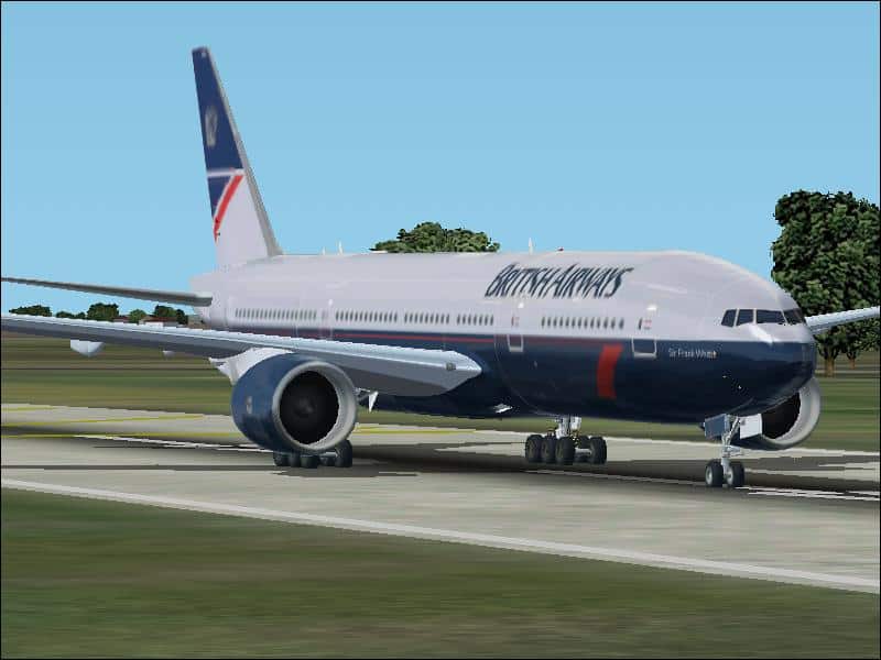 FS2002 British Airways Boeing 777-236, registration G-ZZZA.Named ‘Sir Frank Whittle’ in the old British Airways Landor livery.(Updated version with improved tail and other minor features). This rendition of the B777 has been completely built from scratch in Gmax and features a 32-sided fuselage and engines; “maintenance mode” featuring opening engine cases, deployable Ram Air Turbine, opening gear bay doors on ground, opening captain’s window; virtual cabin (Business Class); folding wings; reflective textures; flexing wings; & more. Original model by Meljet (Melvin Rafi).Repaint By Lewis Lang. 2.8MB