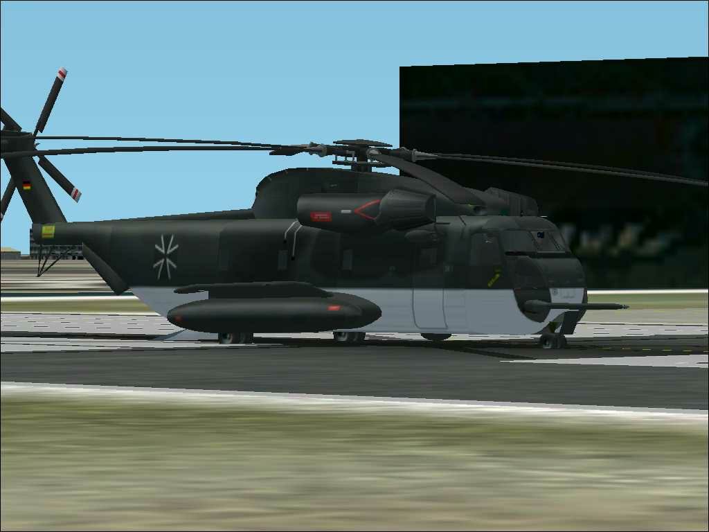 FS2002 CH53W Sea Stallion CH53 German Army. Original design by Shlomo ‘Slo Mo’ Hakim Repaint by Joachim Lingscheid. 1.2MB