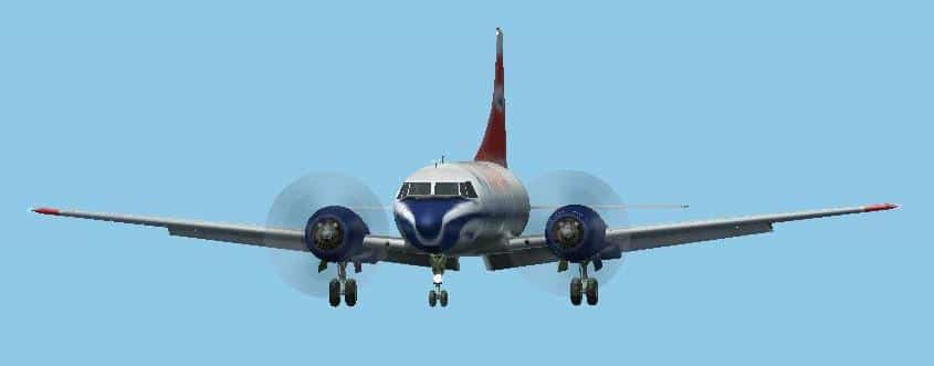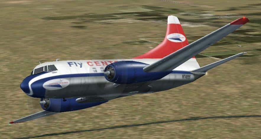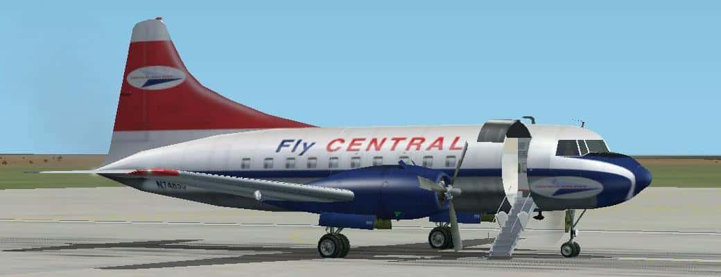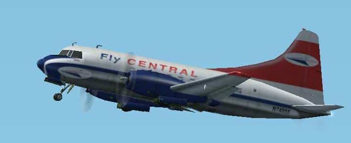 FS2002 Convair CV-240 Central Airlines. Built by Greg Pepper and Tom Gibson, Painted by David Grogg, Many textures based on photos provided by Steve Mathis. Panel by Greg Pepper, panel bitmap by Allen Jennings, gauge bitmaps by Allen Jennings and Greg Pepper, gauges by Greg Pepper and Tom Gibson. Flight dynamics by FSAviator (true FS2002 flight model with dynamics derived from actual flight manual information), correct within 3% of the real flying characteristics – see Reference file (F10). This FDE is not designed for AI use – it will not work. 13.8MB
