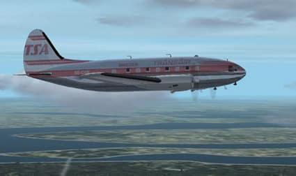 FS2002 Curtis C46 in Transair livery. Curtis C46 in Transaircolour in an early painting.Transair was one of the early charterairlines in Sweden. Mike Stone made this aircraft , repainted by Ronny Olofsson.Thank you Garry J Smith for your lovely metaltextures. 3.3MB