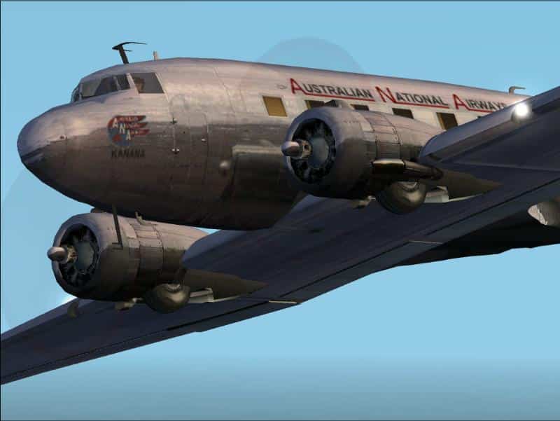 FS2002 Douglas DC-3 Ansett (ANA) VH-ABR VH-ABR is offered here both in her current Ansett Airways livery, as of 1996, and earlier Australian National Airways colours. The aircraft, having been restored by Ansett staff and volunteers, is in wonderful condition today considering that she was originally delivered to ANA in 1938. She flies from Melbourne-Tullamarine, Victoria, Australia and is operated by the Ansett Historical Aviation Group. Based on Jan Visser’s legendary DC-3 model for FS2000, updated for FS2002, this model has Wright Cyclone engines and includes transparent cabin windows, nightlighting, 3D interior with opening passenger folding stair door, and other details. Includes FS2002 lights fix by Paul Pridmore. Default panel and sound. Repaint by Mark Beaumont. File name: DC3ANANA.ZIP