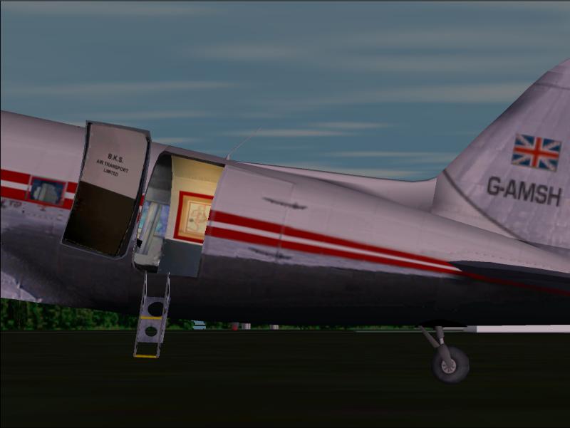 FS2002 Douglas DC-3 BKS Air Transport Limited G-AMSH This DC-3 Dakota (c/n 16583, RAF XF648) was purchased from RAF Kilbride by BKS Air Transport Ltd. in May 1952 and served the company as G-AMSH ‘John Alcock’ until December 1966. Based on Jan Visser’s legendary DC-3 model for FS2000, updated for FS2002, this model includes transparent cockpit and cabin windows, nightlighting, lit 3D interior with opening passenger door, boarding ladder and other details. Includes FS2002 lights fix by Paul Pridmore. Default panel and sound. Repaint by Mark Beaumont. File name: DC3BKS.ZIP. 3.1MB