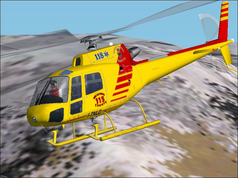 FS2002 Ecureuil AS-350 B3 Trento Autonomy Country (Italy) Firebrigade. Those pilots operate in high altitude and heavy condition for rescue missions and Fire attributive missions. This model was made in their honor (Thanks to Frans for his kindly permission). This model includes original engine sound. Original model by Jean-Pierre Langer, Arne Bartels and Frans Vranken. Reworked mdl file and Repainted texture by Roberto Piazza. 3.3MB