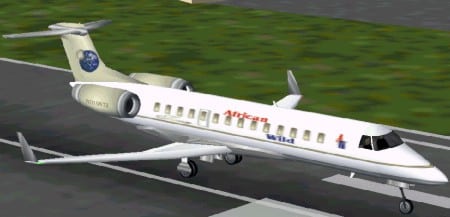 FS2002 Embraer Legacy. “AFRICAN WILD TOUR” An FSDS executive jet with 512×512 textures, full moving parts,nav and strobe lights, landing lights, recessed wheel wells,rolling wheels, and a transparent virtual cockpit with moving pilots. Own panel based on fotorealistic aircraft Public Domain. Original By Chuck Dome. Panel and Repaint by Mario Coelho. 2.2MB
