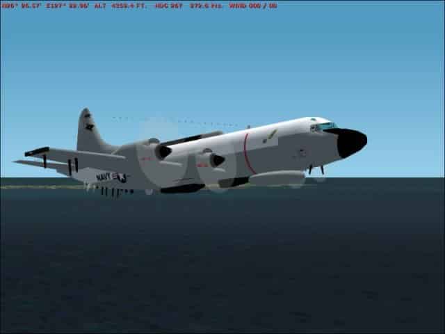 FS2002 EP-3E ARIES US Navy Electronic Surveillance aircraft. Based on the actual aircraft, Mission KR919, which made an emergency landing in China after colliding with a Chinese F-8 fighter nar Hainan Island, April 1, 2001. Made with FSDS and AA; 32 sided fuselage, authentic markings, custom panel. Jim Bennett. 1MB
