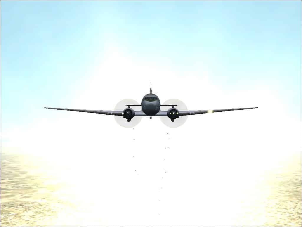 FS2002 Flight Plan: Val-U-Prop CargoLiner Gets Saddam! The CIA has reliable intelligence info on the exact whereabouts of Saddam Hussein. Believing (we hope correctly) that a lone DC-3 hedge-hopping (well, SAND-hopping) across the desert at low altitude can sneak its way into Baghdad, the agency has commissioned Val-U-Prop to perform a GPS guided bomb attack on the dictator. To maintain radio silence this is a GPS only flight. FS98 and FS2000 users may use ACS-GPS: FS2002 users can just drop the folder into “myflts” and it will pop up in flight planner. This is WAR folks. And Val-U-Prop must do its part! (aircraft used is available here)By James Underwood. 44K