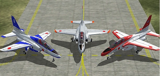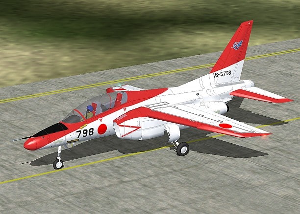 FS2002 JASDF Kawasaki T-4 v2 with virtual cockpit added. A blue impulse, a red dolphin, and seven kinds were drawn from the kind of color variation of T-4 which is a Japanese middle class jet trainer. Repainted by Hiroaki Kubota (general purpose color) and Masatoshi Higake (red dolphin). Model By Daisuke Yamamoto. 3.9MB