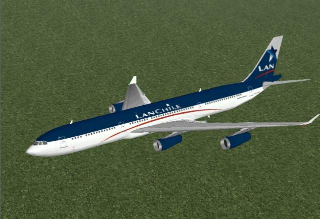 FS2002 LAN Chile Airbus A340-300 (ProMaxL2) ProMaxLT Ver.2, features new textures showing passenger windows reflecting on the wings at night and and redesign flaps. Design and paint for FS 2000 by: Camil Valiquette. Near photographic Main Panel with working gauges, Autoland capability; GPS; FMC; Yoke; Crew dialog; Altitude warning; Altitude calls during approach.Built by Capt. I. D’Attomo. Panel added and FS 2002 update by Rolf Fleckenstein. 1.1MB