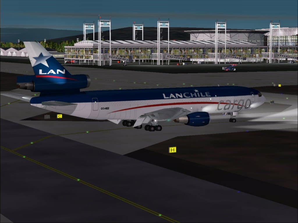 FS2002 MCDONNEL DOUGLAS DC-10-30F. Painted in Lan Cargo livery (fictional) , registration: CC-HEE. This is a fantasy repaint of the Freeware Flight Group DC-10. It features a full array of excellent features: 32 sided fuselage (for near-perfect roundness); 32 sided engines; accurate 3D parts (most, if not all, textured); fully 3D intakes/outlets/gear bays/cockpit; FULL moving parts (ailerons, rudder, elevators, spoilers, slats, flaps, landing gear, fan blades and spinner cones); accurately illuminated at night; accurate animation sequences; crisp, clear liveries. Rainted by Hugo Espinosa & Cesar Carrasco. 3.1MB