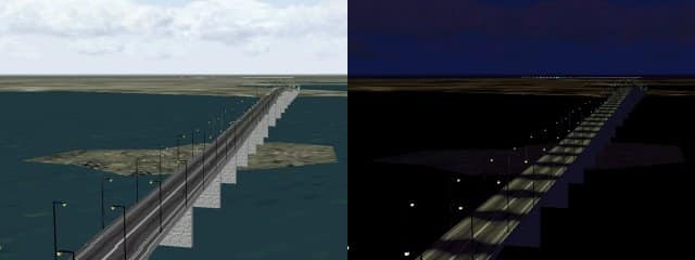 FS2002 OELAND SCENERY, Sweden. This is a first part of a scenery covering a number of smaller airports, landmarks, and lighthouses on and around the island of Oeland in the southeast of Sweden. This first part shows the bridge connecting the island to the mainland. At the time it was built it was Sweden’s longest bridge. PROPERTY RIGHTS AND CREDITS © Dirk Veenhuizen. 283K