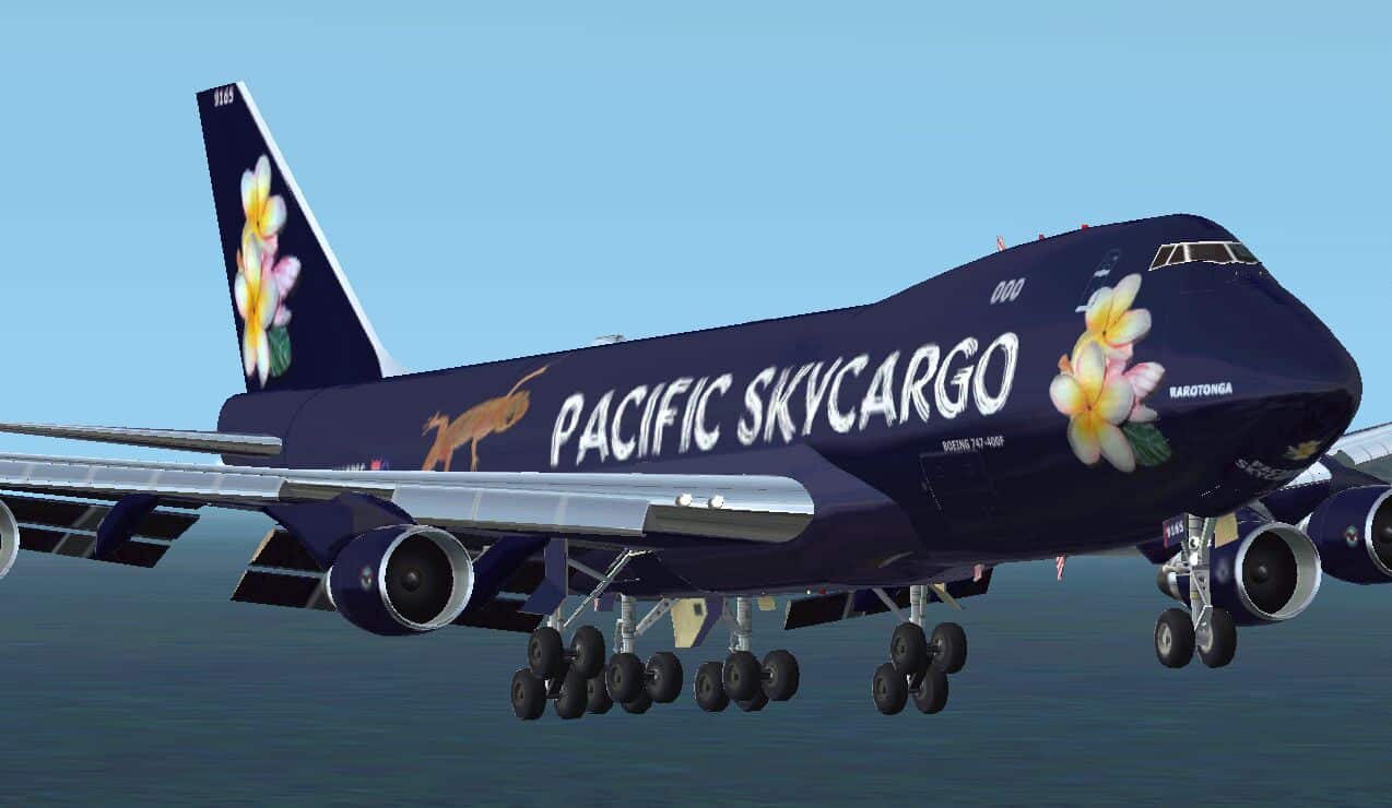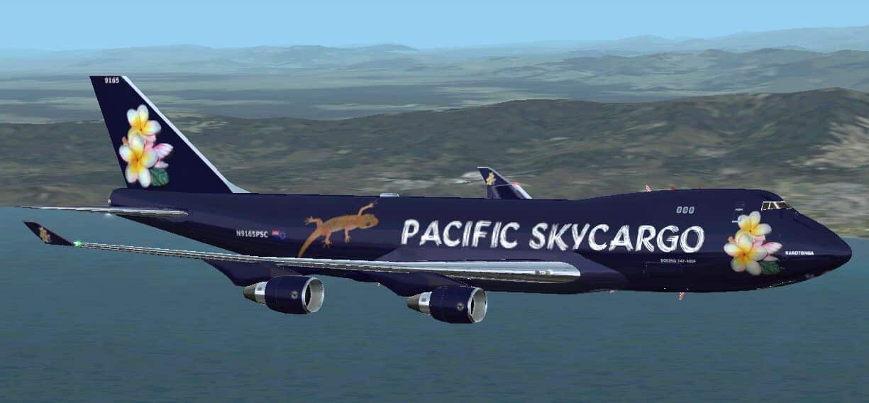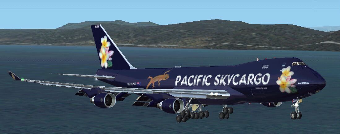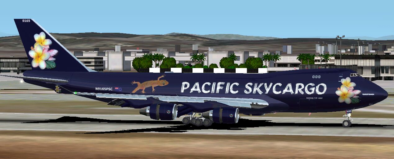 FS2002 Pacific Skycargo Boeing 747-400. This is a fictional repaint for MelJets B747-400F. As you can see…i like geckos and the frangipani´s remebering me for my great time in the south pacific. enjoy! Package includes aircraft and repaint. Model and and Paintkit by Melvin Rafi (www.meljet.com) Fictional repaint by Mirko Weber. 3.9MB