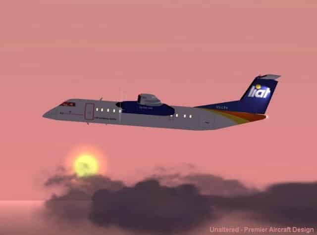 FS2002 PRO Dehavilland DASH8-311 New LIAT Livery. Leeward Islands Air Tranport. Reg_ID: V2-LFV based in Antigua, West Indies. Ver 6 with full moving parts, Night effects and animated textures. Aircraft design & original artwork by Barry Blaisdell Livery & night effects by Bob May. Premier Aircraft Design. 403K