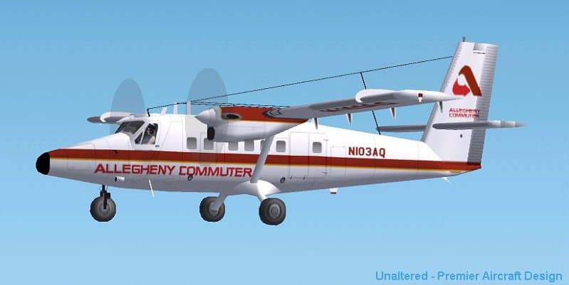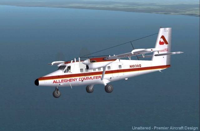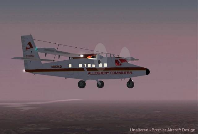 FS2002 PRO Dehavilland DHC6-300 Twin Otter. Allegheny Commuter Reg_ID: N103AQ. This aircraft was operated by Ransome Airlines in the 1970’s & 1980’s as part of the Allegheny Commuter network. Aircraft Design & Artwork: Barry Blaisdell, Livery & Night textures: Bob May Premier Aircraft Design. 353K