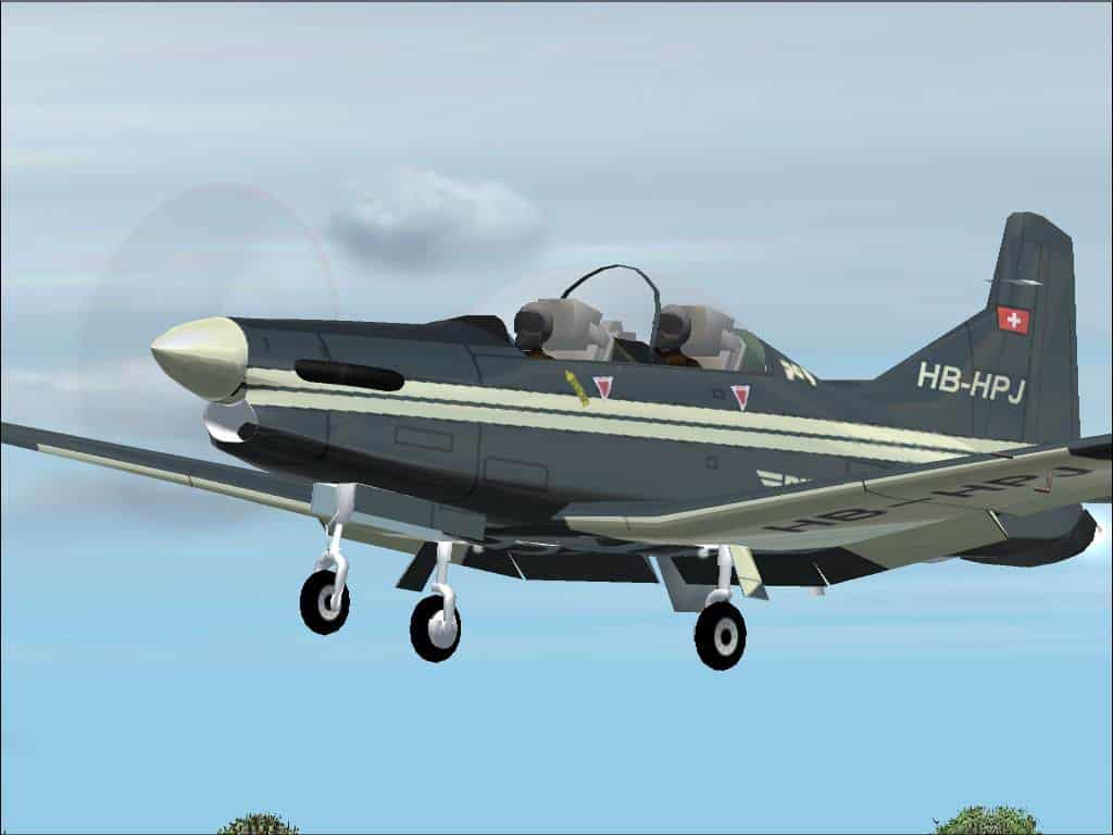 FS2002 Pro Pilatus PC9M HB-HPJ. Version 1.0. Depicted here is HB-HPJ the Pilatus PC9 Demonstrator. The PC9M is the current production variant built by Pilatus Aircraft of Switzerland. This version has been created by using Abacus’ Flight Simulator Design Studio version 2. Features include full moving parts including undercarraige suspension, opening canopy and reflective textures. Model and Flight dynamics By David Friswell. Textures By Barry Magann. Panel By Luke Hampshire. 4.3MB