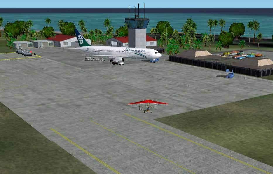 FS2002, Rarotonga International Airport, Cook Islands. NCRG By: Bill Melichar This scenery adds a new realistic terminal and hangar area to the airport at Rarotonga. This is a small airport with an adequate runway to handle large airliners. The scenery also includes some static aircraft in the liveries which service this airport. It has subdued night lighting, aircraft stairs and service vehicles, gas tanks, and tropical landscaping to make you feel like you are there. 1.2MB